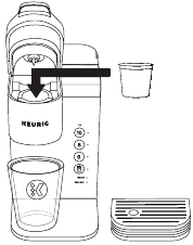 Riempire il bicchiere termico con ghiaccio e posizionarlo sul vassoio raccogligocce (per maggiore altezza, rimuovere il vassoio raccogligocce). Sollevare la maniglia e posizionare una capsula K-Cup® nel portacapsule K-Cup®. Abbassare completamente la maniglia per chiudere il coperchio.