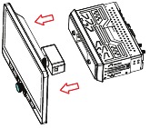 Per collegare l'LCD all'unità, spingere con cautela il connettore dell'LCD nel telaio del ricevitore fino a udire un clic come mostrato di seguito.