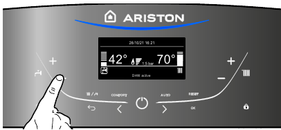 - Pulsante di regolazione dell'acqua calda sanitaria +/-