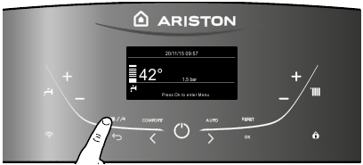 RIPRISTINARE LA PRESSIONE CORRETTA UTILIZZANDO IL LOOP DI RIEMPIMENTO (POSIZIONATO SOTTO LA CALDAIA) E PREMERE IL PULSANTE MODE PER 5 SECONDI. SUL DISPLAY COMPARE LA SCRITTA "Air Purge Active".