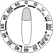 Ruotare il selettore del programma in senso orario o antiorario per selezionare il programma e la temperatura in base all'etichetta di cura, o uno dei programmi speciali.