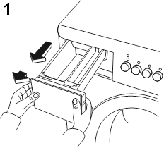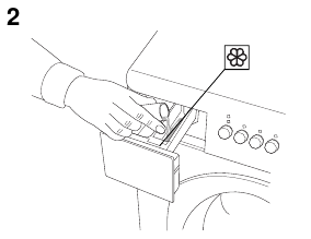 Con scomparti separati per detersivo e ammorbidente. Il detersivo viene versato nello scomparto più grande a sinistra contrassegnato dal simbolo