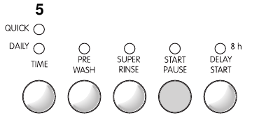 Questo pulsante consente di ritardare l'avvio del programma di lavaggio di 8, 4 o 2 ore. Il ritardo selezionato è indicato dall'illuminazione della luce corrispondente.