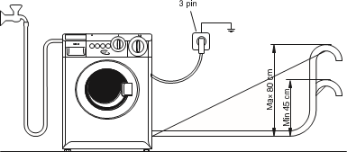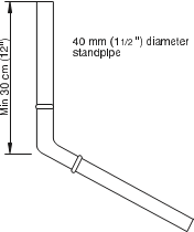 Sia che si scarichi in un lavandino o in un tubo verticale, controllare che l'estremità del tubo di scarico non sia né troppo alta né troppo bassa. La parte superiore della curva all'estremità del tubo deve essere non più di 800 mm (31.5") e non meno di 650 mm (25.6") sopra il livello del pavimento.