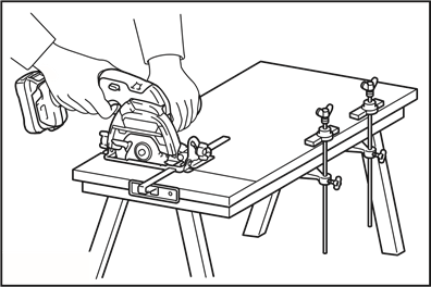 - Non forzare mai la sega. Spingere la sega in avanti a una velocità tale che la lama tagli senza rallentare. Forzare la sega può causare tagli irregolari, perdita di precisione e possibile contraccolpo.
