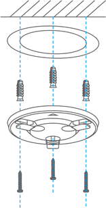 - (Solo per pareti/soffitti in cemento) Praticare i fori per le viti secondo il modello e inserire tre viti di espansione.