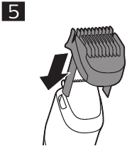 - Far scorrere il pettine di rifinitura direttamente nella scanalatura di guida dell'apparecchio (Fig. 5).