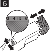 - Per rifinire in modo più efficace, muovere l'apparecchio contro la direzione di crescita dei capelli. Assicurarsi che la superficie del pettine rimanga sempre a contatto con la pelle.