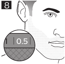 Utilizzare il pettine di rifinitura attaccato all'elemento di taglio per rifinire la barba e i baffi nel proprio stile preferito. Ruotare la rotella dello zoom per scegliere tra 11 impostazioni di lunghezza che vanno da 0,5 mm a 10 mm (da 1/32 di pollice a 13/32 di pollice).