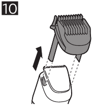 Non immergere mai l'apparecchio in acqua e non risciacquarlo sotto il rubinetto. Solo l'unità di taglio può essere risciacquata sotto il rubinetto. - Rimuovere il pettine (Fig. 10) e pulirlo con la spazzolina di pulizia e/o risciacquarlo sotto il rubinetto.