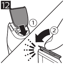 - Inserire la linguetta dell'unità di taglio nella fessura di guida e spingere l'unità di taglio indietro sull'apparecchio (Fig. 12).