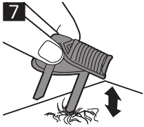 - Rimuovere regolarmente i peli tagliati dal pettine. Se si è accumulata una grande quantità di peli nel pettine, rimuoverlo dall'apparecchio e soffiare e/o scuotere i peli (Fig. 7). L'impostazione della lunghezza dei capelli selezionata non cambia quando il pettine viene rimosso.
