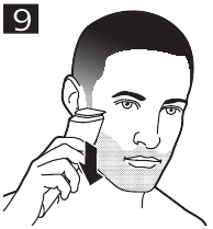 - Eseguire movimenti ben controllati. Toccare leggermente i peli con il rifinitore (Fig. 9).