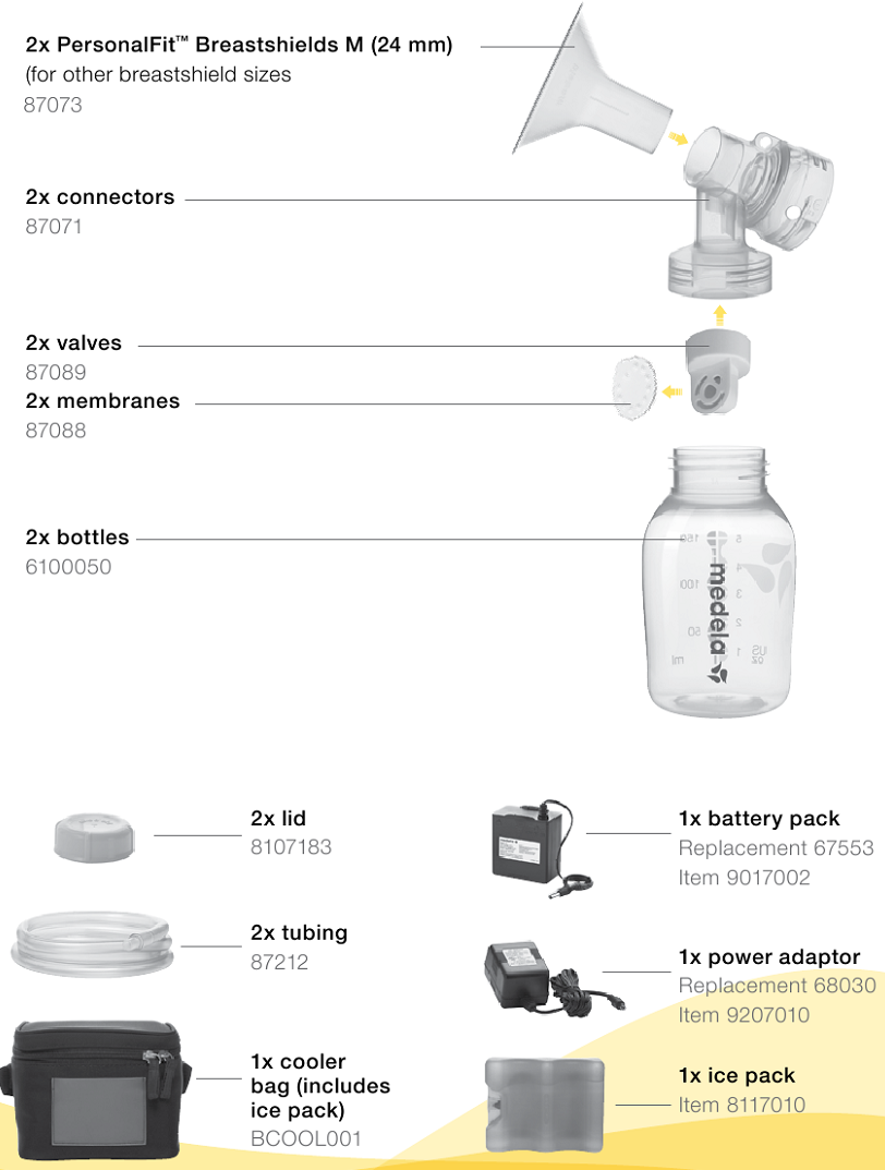 - Pulire e disinfettare tutte le parti che entrano in contatto con il seno e il latte materno prima del primo utilizzo.