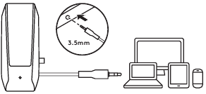 - Collegare il connettore da 3,5 mm all'ingresso da 3,5 mm (jack per cuffie) del dispositivo per l'audio