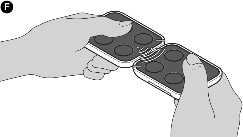 - Екі трансмиттерді бір-біріне тиіп тұратындай етіп ұстаңыз, жатталатын "ЖАҢА" және бұрын жатталған "ЕСКІ" (F сурет).