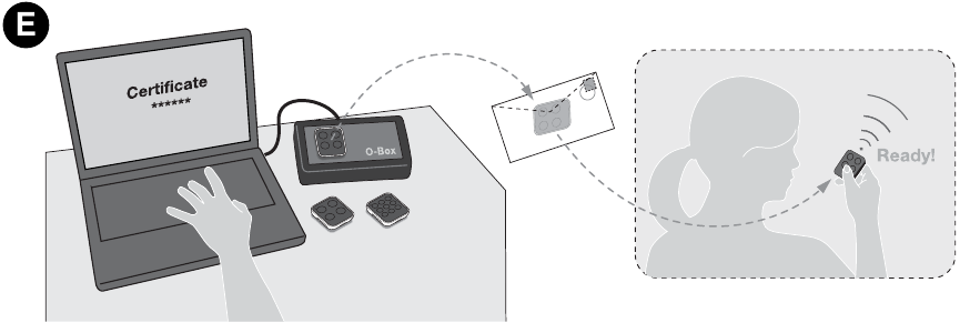 Бұл процедура "O-Code" кодтау жүйесі бар NiceOpera жүйесіне жататын құрылғылар үшін арнайы жасалған. Бұл жүйедегі әрбір қабылдағыш "СЕРТИФИКАТ" деп аталатын белгіленген нөмірмен байланыстырылады, ол оны анықтайды және растайды. Бұл "сертификатты" пайдалану қабылдағышта трансмиттерді жаттау процедурасын жеңілдету артықшылығына ие, өйткені орнатушы енді қабылдағыштың қабылдау диапазонында жұмыс істеуге міндетті емес. Шынында да, процедура "O-Box" бағдарламалау блогының көмегімен трансмиттерді тіпті қашықтағы жерден, орнату орнынан алыс жерден жаттау үшін бағдарламалауға мүмкіндік береді (мысалы, орнатушының өз үй-жайында - Е сурет).