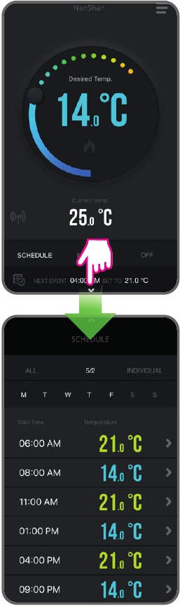 Қолмен режимде сіз кестені тұрақты түрде өзгертесіз. Кестеге ауысу немесе термостатты өшіру арқылы Қолмен режимнен шығыңыз.