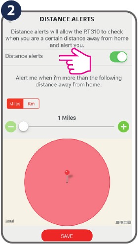 - Орналасу режимі қосылған болса, қашықтық шегін орнату үшін жылжытқышты сүйреуге болады. Параметрлеріңізді басқару үшін "Параметрге" өтіңіз.