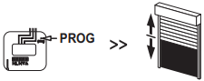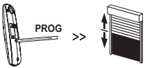 - Ролик жапқыш бір рет жоғары және төмен жылжығанша, содан кейін бірнеше сәттен кейін екінші рет жылжығанша RTS қабылдағышының PROG (PROG) түймесін 7 секундтан артық басыңыз.