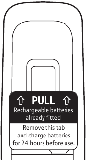 - Тұтқа экранынан және база линзасынан қорғаныш пленканы алып тастаңыз және тұтқаның артқы жағынан пластик қойындыны тартып, батареяларды іске қосыңыз.