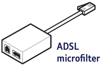 Кең жолақты интернетті бір телефон желісінде пайдалану | Телефонды қабырғадағы розеткаға ADSL микрофильтрі (жеткізілмеген) арқылы қосқаныңызға көз жеткізіңіз, әйтпесе бұл өніммен және кең жолақты қызметіңізбен проблемалар болуы мүмкін. Егер сіз BT Infinity-ді пайдалансаңыз, ADSL микрофильтрін пайдаланудың қажеті жоқ. |