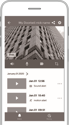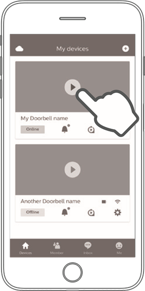 Wake up the device to enter into the interface, and then press the outdoor checking icon or short press the function button to view the instant scenes outside the door. (Интерфейске кіру үшін құрылғыны оятыңыз, содан кейін есік сыртындағы лездік көріністерді көру үшін сыртқы тексеру белгішесін басыңыз немесе функция түймесін қысқа басыңыз.)