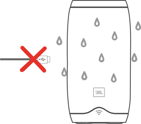 JBL Link 20 су өткізбейтініне көз жеткізу үшін барлық кабель қосылымдарын алып тастап, қақпақты мықтап жабыңыз; JBL Link 20-ны олай етпестен сұйықтықтарға ұшырату динамикке тұрақты зақым келтіруі мүмкін. Және JBL Link 20-ны зарядтау кезінде суға ұшыратпаңыз, себебі бұл динамикке немесе қуат көзіне тұрақты зақым келтіруі мүмкін.