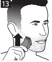 - Теріге жақын жерде түктерді қырқу үшін кесу элементінің жалпақ жағын теріңізге қарсы қойып, түк өсу бағытына қарсы соққылар жасаңыз (13-сурет).