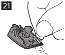 - Қондырмаларда және/немесе тарақтарда жиналған кез келген шашты щеткамен және/немесе үрлеп тазалаңыз (21-сурет).