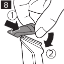 - Кез келген түрдегі тарақты кесу элементінен ажырату үшін оның артқы бөлігін өнімнен тартып, содан кейін оны кесу элементінен сырғытыңыз (7-сурет).