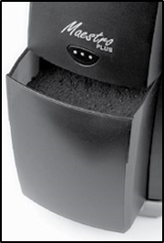 Maestro Plus-ты тегіс жерге қойып, тек дұрыс кернеуге, айнымалы ток розеткасына қосыңыз. Қақпақты көтеріп, дәнді салғыштан алыңыз. Қуырылған тұтас кофе дәндерінің қажетті мөлшерін дәнді салғышқа ең көбі 8 унцияға дейін құйыңыз. Қақпақты орнына қойыңыз. Тартылған кофеге арналған қораптың толық салынғанына көз жеткізіңіз.