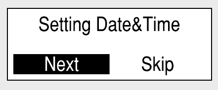 Қуатты бірінші рет қосқанда немесе сағат орнатылмаған кезде "Setting Date&Time" ("Күні мен уақытты орнату") пайда болады және сіз сағатты орната аласыз.