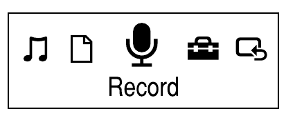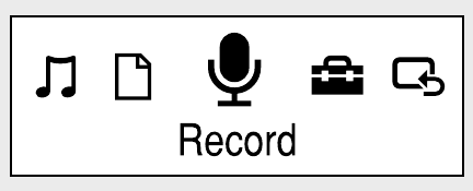 HOME мәзірі IC жазғышта функцияны таңдауға, жазылған файлдарды іздеуге немесе параметрлерді өзгертуге мүмкіндік береді.