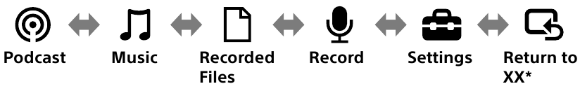 ![]() Recorded Files | IC жазғышты пайдаланып жазылған файлдарды таңдап, ойнатуға болады. Жазылған файлдар ҚАПШЫҚТА сақталады. |