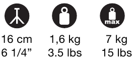 Manfrotto штативтерінің үстіңгі пластинасы бастың негізіне қарсы қысып, тиімді және қауіпсіз құлыптауды қамтамасыз ететін үш бұрандамен "V" жабдықталған.