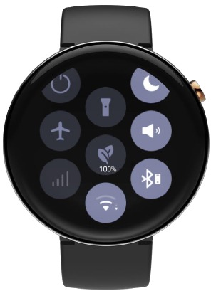 Басқару орталығын іске қосу үшін сағат бетінің жоғарғы жағынан төмен қарай сырғытыңыз, сонда сіз кейбір жиі қолданылатын мүмкіндіктерді қосуға/өшіруге және осы беттегі режимдерді ауыстыруға болады. Тиісті мүмкіндік үшін "Settings" (параметрлер) бетіне кіру үшін белгішені ұзақ басыңыз.