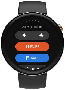Тоқтатқаннан кейін, әрекетіңізді аяқтау үшін "Save" (сақтау) опциясын таңдаңыз, әрекет режиміне қайта оралу үшін "Resume" (жалғастыру) опциясын таңдаңыз және ағымдағы әрекетті сақталмаған күйде қалдыру үшін "Discard" (бас тарту) опциясын таңдаңыз. Әрекетіңіз аяқталғаннан кейін, сағат осы әрекеттің мәліметтерін көрсетеді және сақтайды, және сіз оларды сағаттан немесе Amazfit қолданбасынан қайта тексере аласыз.