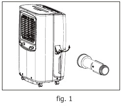 - Құрылғының бүйіріндегі дренаж қақпағын ашыңыз және дренаж қосылысын пенопласт қаптамасының жоғарғы жағынан алыңыз. (1-сурет)