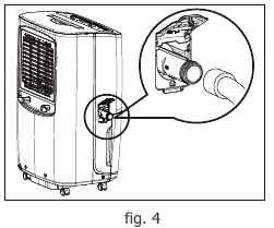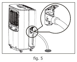 - Үздіксіз дренаж опциясын тоқтатып, шелекті пайдаланып суды жинау үшін бақша шлангін алып тастау және ағып кетпеу үшін дренаж қосылысын шығару керек, содан кейін дренаж қақпағын қайтадан салыңыз.