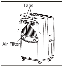 - Сүзгіні алу үшін қойындыларды тартыңыз, содан кейін сүзгіні шығарыңыз.