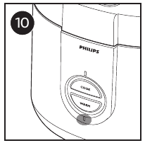 - Күріш пісіргіш автоматты түрде жылыту режиміне ауысады және жылыту (Warm) индикаторы жанады (10-сурет).