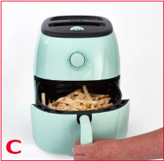 - Өте үлкен тағамдарды, металл фольга қаптамаларын және ыдыстарды Air Fryer (Ауада қуыруға арналған құрылғы) ішіне салуға болмайды, себебі олар өрт немесе электр тогының соғу қаупін тудыруы мүмкін.