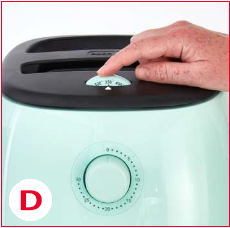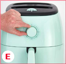 және ауа фритюрницасын қабырғадағы розеткаға қосыңыз. - Қажетті температураны орнату үшін температура реттегішін пайдаланыңыз (D фотосы).