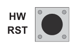 Аппараттық қайта жүктеу батырмасы ("HW RST" деп белгіленген) схемалық платаның оң жағына қарай, HW батарея ұстағышының астында орналасқан шағын дөңгелек батырма болып табылады. Бұл батырманы басу LCD RST дисплей экранының толық толтырылуына, жылыту және салқындату жүктемесі релелерінің өшуіне, аппараттық орнату опциясы қосқыштарының күйін оқуға және термостат құрамдастарының ішкі жүйелік тексеруін орындауға әкеледі. Егер сіздің термостатыңыз дұрыс жұмыс істемесе, аппараттық қайта жүктеу батырмасын басу бұл әрекетті түзетуі мүмкін. Аппараттық қайта жүктеу орындалған кезде температура бағдарламалары өшірілмейді, алайда сағатты ағымдағы күн мен уақытқа сәйкестендіру үшін өзгертуге тура келеді.