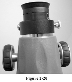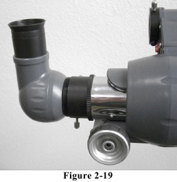 - 35 мм-лік SLR камерасы – камераңыздан линзаңызды алып тастап, нақты камера бренді үшін T-Ring-ті бекіту қажет болады. Содан кейін T-Ring-ке бір ұшымен және телескоп фокус түтігіне екінші ұшымен бекіту үшін T-адаптері (# 93625) қажет болады. Енді сіздің телескопыңыз камера линзасы болып табылады. Сіз сондай-ақ 90 EQ-ді окуляр адаптерінің T-жіптерін (2-19 сурет) пайдалану арқылы бейімдей аласыз, мұнда T-сақинасы T-адаптерін (# 93625) пайдаланудың орнына бұралады.