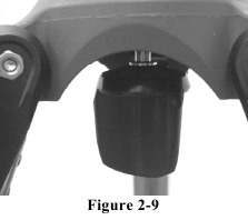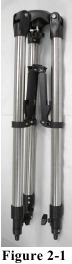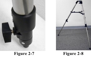 - Штативтің аяқтарын қалаған биіктікке дейін ұзарта аласыз. Ең төменгі деңгейде биіктігі 24" (61 см), ал 41" (104 см) дейін ұзарады. Әрбір аяқтың төменгі жағындағы штативтің аяқ құлпының тұтқасын ашып (2-7-сурет) және аяқтарды қалаған биіктікке дейін тартыңыз & содан кейін тұтқаны мықтап құлыптаңыз. Толық ұзартылған штатив 2-8-суреттегі кескінге ұқсайды.