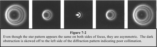 Polaris немесе жарық жұлдыз көру өрісінің ішінде орталықтандырылған кезде, стандартты окулярмен немесе ең жоғары қуатты окулярыңызбен, яғни 6 мм немесе 4 мм сияқты мм-дегі ең қысқа фокус ұзындығымен фокустаңыз. Тағы бір нұсқа - Barlow линзасы бар ұзынырақ фокус ұзындығы окулярын пайдалану. Жұлдыз фокуста болған кезде ол жарықтың өткір нүктесі сияқты көрінуі керек. Егер жұлдызға фокустаған кезде ол пішіні бойынша тұрақты болмаса немесе оның шетінде жарық шашырағандай көрінсе, бұл сіздің айналарыңыздың тураланбағанын білдіреді. Егер сіздің фокустан дәл шығып, кіріп жатқаныңызда жұлдыздан жарық шашырауының көрінісі тұрақты орнында қалса, онда қайта коллимациялау кескінді айқындауға көмектеседі.