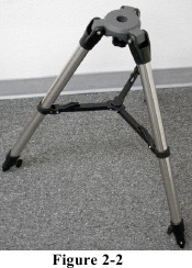- Штативті тік қойып, әрбір аяғы толық ұзартылғанша штативтің аяқтарын ажыратыңыз, содан кейін штативтің аяқ тірегін сәл төмен қарай басыңыз (2-2-сурет). Штативтің ең жоғарғы жағы штатив басы деп аталады.