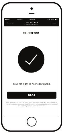 PASTABA: Įsitikinkite, kad jūsų "WINK" koncentratorius yra įjungtas ir yra ventiliatoriaus veikimo zonoje. Diapazoną rasite "Wink HUB" vartotojo vadove.